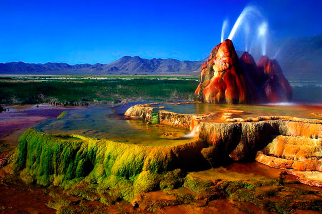 This geyser in Nevada is one of the most bizarre sights of the United States. It was created in 1916 by accident during the drilling of oil wells: water heated by geothermal energy, it came to the surface, triggering a colorful spectacle. Geiser includes various minerals and thermophilic algae which emit jets of water of 1.5 m in the air and give it a variety of colors and appearance of plastic. This terrace is made up of about 40 water basins in the territory of 30 hectares.