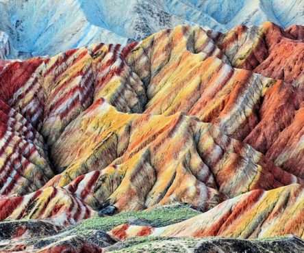 Unique colored rocks Zhangye dunks are in China, in Gansu Province.