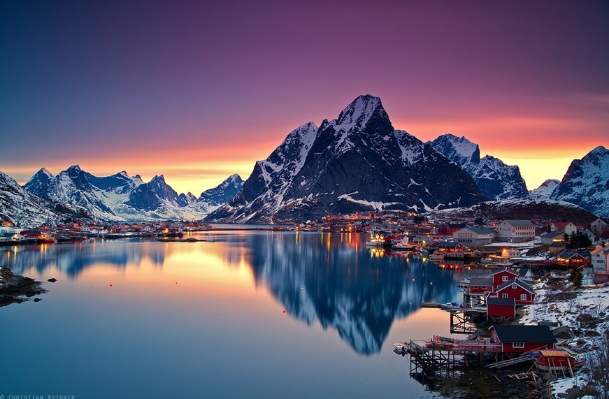The largest weekly magazine in Norway selected Reine as the most beautiful village in Norway in the late 1970s. A photograph over Reine from the mountain Reinebringen has been used for the front page of several tourist brochures and books.